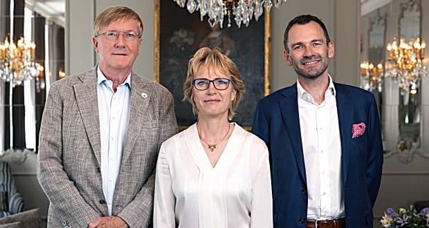 Arp-Hansen Hotel Groups øverste ledelse, fra venstre hovedejer og bestyrelsesformand, Henning Arp-Hansen, koncernchef Dorte Krak og viceadministrerende direktør Robert Thomsen, der også er koncerndirektør for drift og HR. Foto: Arp-Hansen Hotel Group.